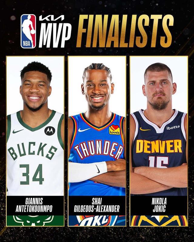 最有价值球员——扬尼斯·安特托昆博(雄鹿)、谢伊·吉尔杰斯-亚历山大(雷霆)、尼古拉·约基奇(掘金)